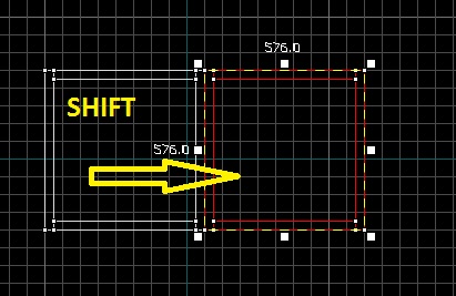 4. Vytvorila sa miestnosť. Teraz na tú miestnosť kliknite v 3D okne, potom prejdite myšou na horné 2D okno (pohľad zvrchu), držte SHIFT a ťahajte miestnosť ľavým tlačidlom myši do pravej strany (SHIFT+ Ľavé tlačidlo myši slúži na skopírovanie objektu a prenesenie) a "položte" ju tesne vedľa seba, aby nevznikla medzera: